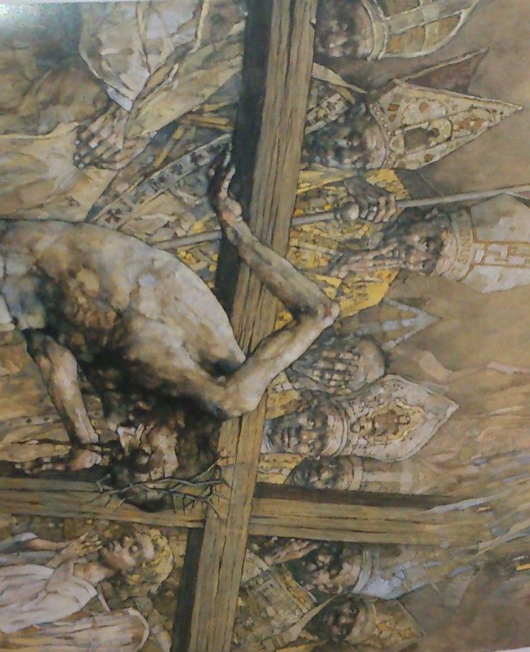 Bilderna visar människor, biskopar och lekmän, kvinnor och män, barn och vuxna. Ansiktsuttrycken visar bedrövelse inför världens ondska som vi står handfallna inför och som sker utan att vi tycks kunna göra så mycket. Bedrövelse över ondskan, men också bedrövelse över vår egen hjälplöshet, att vi kan göra så lite åt den, lidandet fortgår och har sin obevekliga gång. Detta var 1900-talets Europa, konstnären har Förintelsen i klart minne, och förintelselägret Auschwitz/Birkenau ligger bara några mil från Czestochowa där Jasna Gora-klostret ligger.