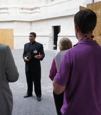 Utanför ingången till utgrävningarna under Peterskyrkan
