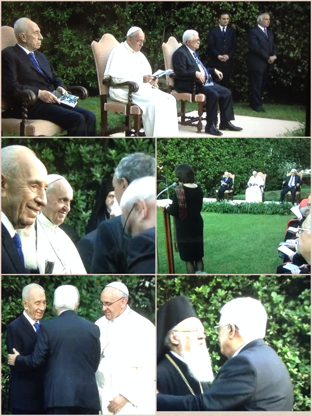 Vad påven exakt sade till Abbas då han lämnade över fredsängel-medaljen finns tydligen inte protokollfört, utan det bygger på vad journalisterna snappat upp i ögonblicket. Dock verkar det som att den tolkning som återgavs av La Stampa, ”må du vara en fredsängel” ligger närmast. Som man känner påven är han inte ute efter att smickra eller upphöja människor, snarare att inspirera dem att följa Guds vilja.