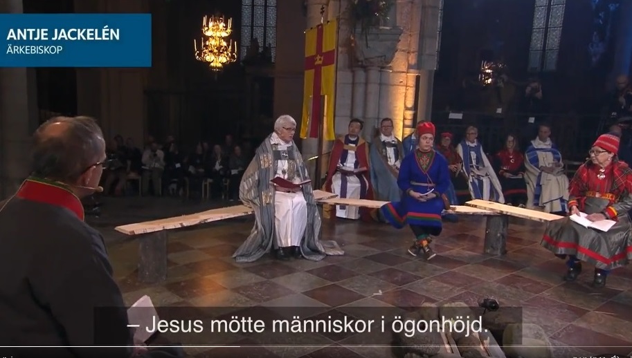 Sverige är inte heller oskyldigt i detta sammanhang, och det är förtjänstfullt att Svenska kyrkan nu uppmärksammar vad som skett med samerna. I en gudstjänst i Uppsala domkyrka i onsdags bad om ursäkt för övergrepp som också kyrkan var involverad i på den tiden man var statskyrka. Man försökte man tvångskonvertera samerna till svenska/kristna seder och bruk, och beröva dem deras kultur. Kyrkan hade en drivande roll i inrättandet och driften av nomadskolor och arbetsstugor. Man tvingade på dem svensk namngivning i kyrkoböckerna, de berövades språk, kultur, mark och historia. Kulturminister Amanda Lind närvarade i gudstjänsten, och kyrkans initiativ leder nu till att Svenska staten tar initiativ till en sanningskommission om hur man behandlat det samiska folket.