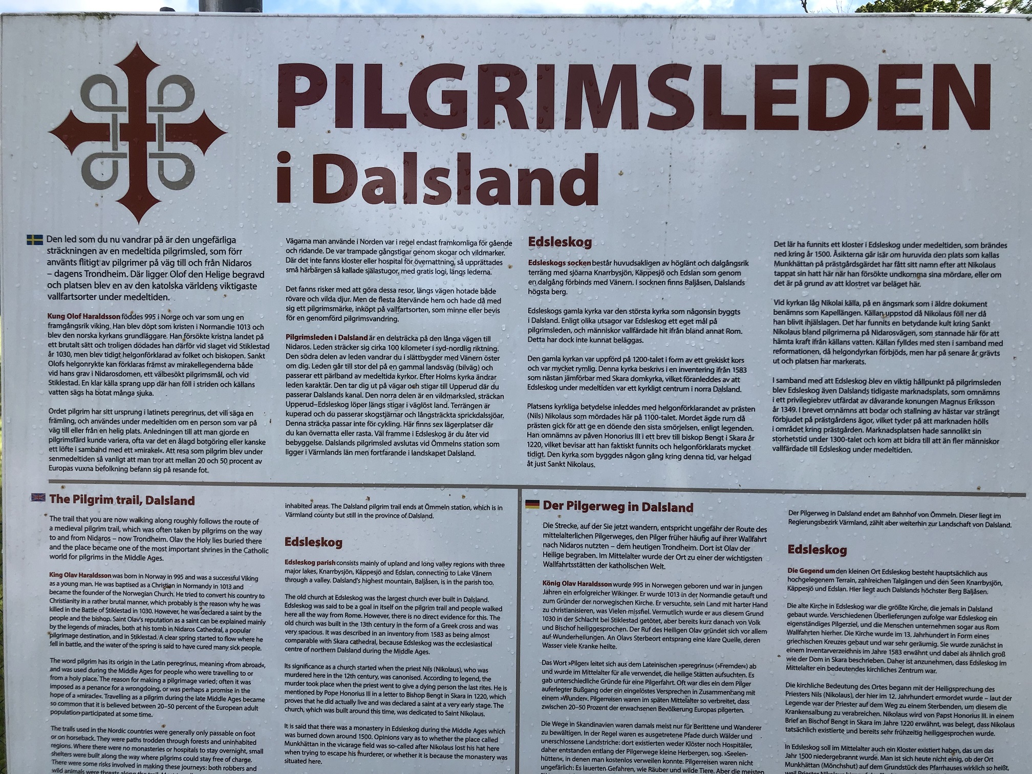 Det gick en medeltida pilgrimsled genom Dalsland på väg från och till Nidaros – dagens Trondheim och den Helige Olofs grav. Det var en av världens viktigaste vallfartsorter under medeltiden. Söderöver anslöt leden till Göta älv-stranden och många pilgrimer hade kanske åkt båt till Lödöse, en medeltida hamnstad av stor betydelse innan det nuvarande Göteborg anlades.