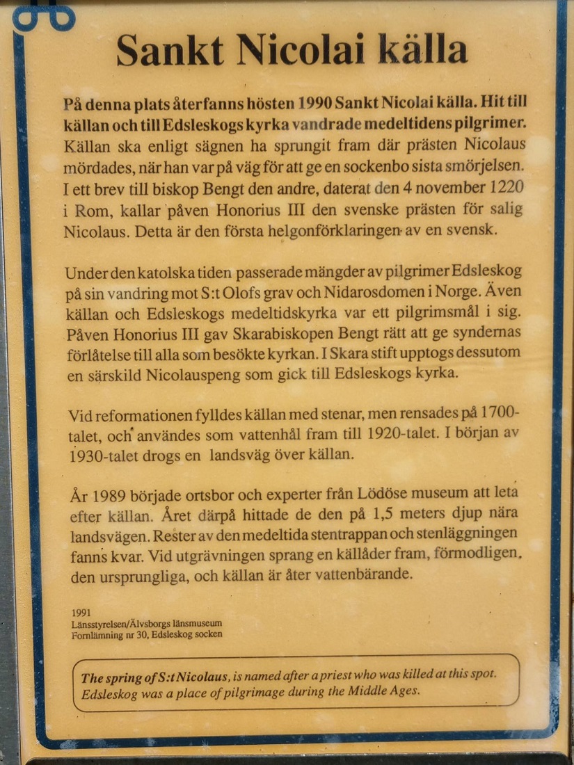 [Dagen skriver] att biskop Anders nu på söndag skall besöka Edsleskog. För 800 år sedan var här en blomstrande knutpunkt på pilgrimsleden mellan Lödöse och Trondheim där pilgrimsvandrare samlades för att vörda det lokala helgonet Nils. Arkeologer från Lödöse museum har grävt fram grunden till på den tiden en av Sveriges största katedraler byggd i den nya tegel-tekniken.