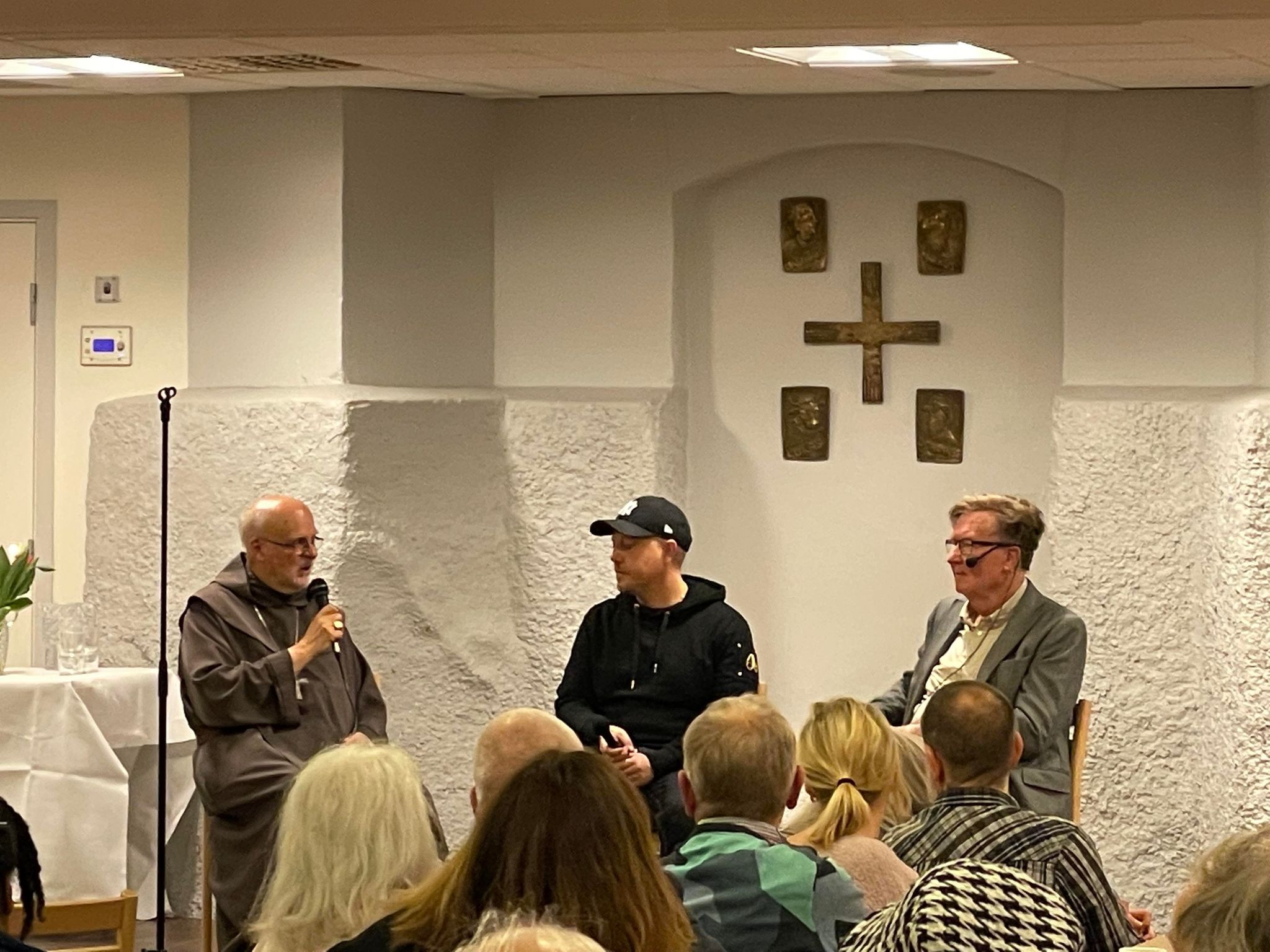 Sebastian sade skämtsamt till mig att han lärt sig ett nytt ord ikväll: ”synodal process”. Ja, vi katoliker vill gärna sätta tekniska termer på mycket, vilket lätt leder till en intellektualisering som fjärmar oss från verkligheten istället för att närma oss den (inte heller alla katoliker har ju varit bekväma med de påbjudna synod-samtalen i församlingarna och valt att inte delta). Synodalitet betyder vandra tillsammans, och det är ju det som det är att vara kyrka. – Sebastian Stakset gör och kommer till skott med det vi katoliker ägnar så mycket tid åt att prata om, och som vi kanske tänker oss komma till skott mednågon gång i framtiden då vi hoppas vara fullärda.